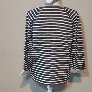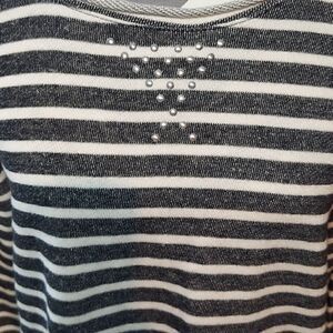 Never worn. 3/4" rolled sleeve. Studding at neckline. 100% cotton. Sz medium. Approx measurements laying flat: 25"L from shoulder, 20"L from neckline, 21"W, 14"L arm from armpit.