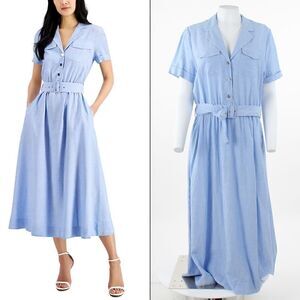 Anne Klein Women's Chambray Belted Shirtdress - Blue Lilly