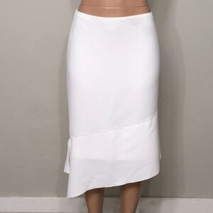 Beautiful ivory skirt from Anne Klein. I love the added fabric on the bottom. It gives it such a romantic sexy feel. This is very comfortable and sits a little bit lower on the waist. I love it so much I almost kept it! I just never dress up. Hidden zipper.