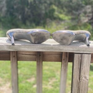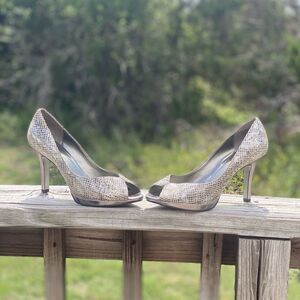 Beautiful metallic reptile print heels . In good condition . See pics for wear .