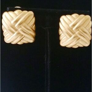 Beautiful Iconic Vintage 1980's Anne Klien signature Gold clip on earrings in elegant Matte Gold plate. The center is high dome with an elegant design.