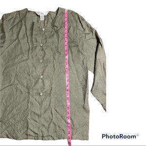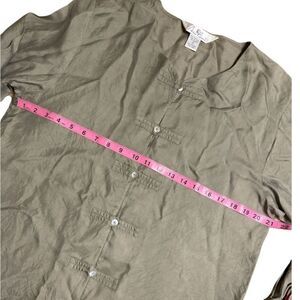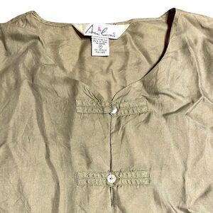 Blouse has mother of pearl effect buttons and is a silk twill fabric. In fabulous condition. Color is light khaki green