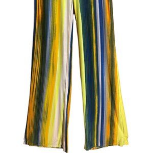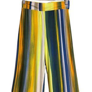 Annes Apparel Women Juniors Neon Striped Pull On Flare Pant Small Bell Stretch