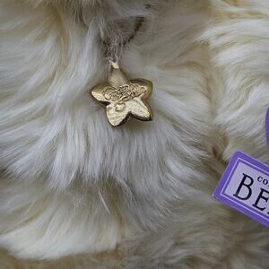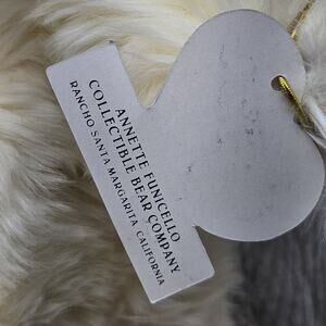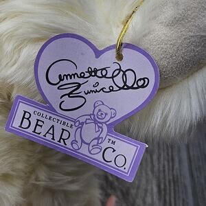 Features soft ivory-white plush fur, star-shaped gold tone Annette Funicello signature tag on neck, and original purple Annette Funicello Collectible Bear Co hang tag
