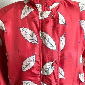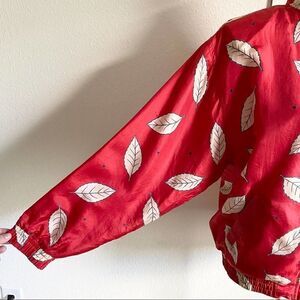 Anney Collection Vintage Red Silk Leaf Print Jacket Women's S Full Zip High Neck