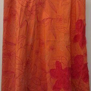 Anni Kuan Women's 100% Silk Intricately Embroidered Floral Orange Size 8 Skirt