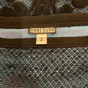 Anni Kuan Turquoise Black Lace Overlay Pencil Skirt Size 2