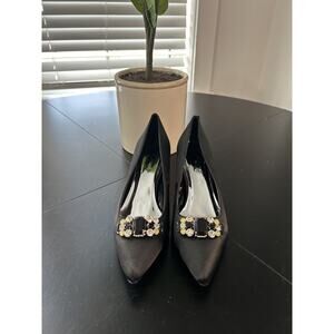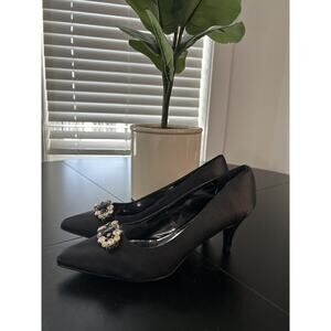 Annie Black Satin Heels w/ Diamond Embellishments – Brand New in Box, Size 9