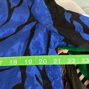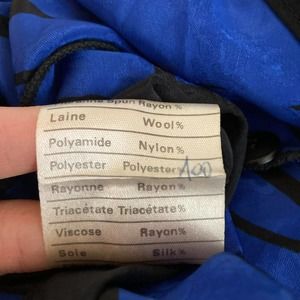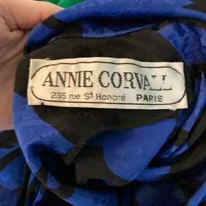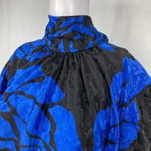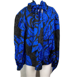 Annie Corvall Shirt Womens Sz 10 Vintage Blue Black Floral High Neck Tie
