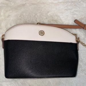 Annie Klein classic curves crossbody black/ withe purse withe brown strap