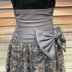 Annie Quince Vintage Velvet Lace Party Dress Tea Length Petticoat Skirt Womens 4