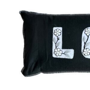 Annie Selke Embroidered LOVE Pillow 15x36 Black & White Valentine Decor