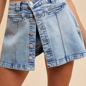 Annie Wear Button Detail Stretch Denim Wrap Mini Skort