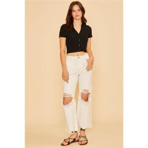 *Distressed raw hem jeans are a trendy and edgy choice for a casual, street-style look. The distressed detailing gives the jeans a worn-in, vintage vibe, adding a cool and laid-back element to your outfit. The raw hem, with its unfinished and frayed edges, adds a touch of ruggedness and adds interest to the bottom of the jeans. These jeans can be styled in various ways - paired with a simple t-shirt and sneakers for a casual everyday look, or dressed up with a blouse and heels for a more fashion-forward ensemble. The distressed raw hem jeans are a versatile piece that can add a modern and stylish edge to your wardrobe.