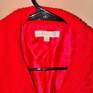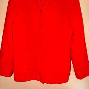 Annie Alexander Women's Sherpa Open Front Collared Jacket in Red - Size 10