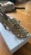Shimmering gold heels with intricate straps. Ideal for a touch of elegance.