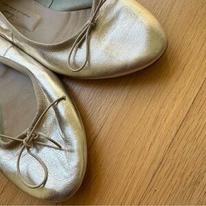 These Anniel flats feature a stunning gold metallic finish, offering a touch of elegance to any ensemble. The shoes are designed with a rounded toe and a low-cut vamp, complete with a charming bow detail on the toe. Crafted for comfort and style, they are perfect for both casual and formal occasions.