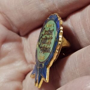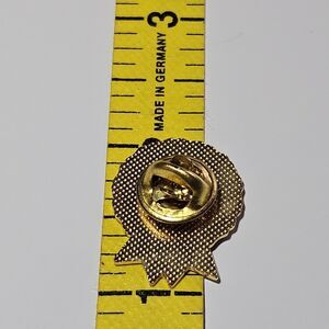 The Annie's Gold Tone Blue Enamel Crochet Quilt & Afghan Club Lapel Ribbon Pin is a unique collectible pin featuring a design that represents a membership club or group. The pin showcases a blue enamel ribbon with gold tone accents, creating a stylish and eye-catching look. Perfect for those who enjoy crafting or creating cozy crochet projects, this pin is a fun and decorative accessory to showcase your love for the hobby. Ideal for pinning on bags, lapels, or even as a keychain charm, this ribbon pin is sure to make a statement and show off your membership pride.