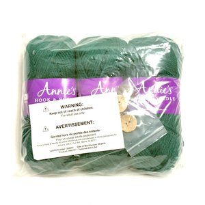 This is a rare Annies Hook & Needle Kit. The pattern is for a hat and scarf with button embellishment. Four buttons are included. The yarn color appears to be a forest green. The package is sealed, so I can't see all the yarn details.