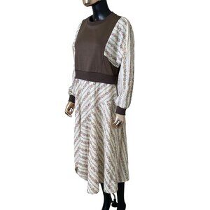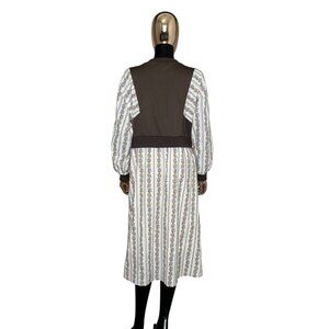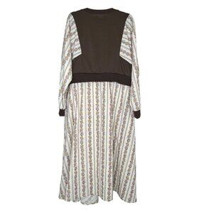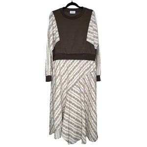 🆕 Anniewear Los Angeles Long Sleeve Midi Dress Brown Bodice with Floral Skirt