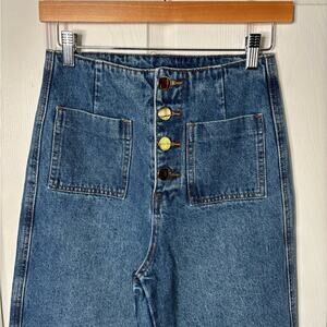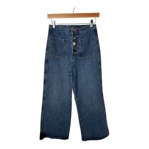 Anniewear Medium Wash High Rise Cropped Button Fly Jeans Size Small