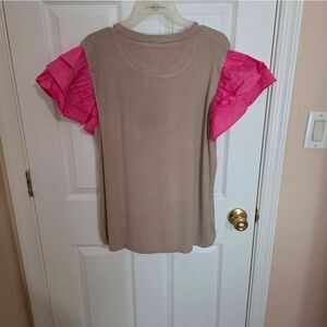 Anniewear Tan Top with Ruffled Pink Sleeves NWT XL
