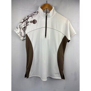 Annika Cutter & Buck Womens Half-Zip Short Sleeve Polo Shirt M White & Brown