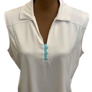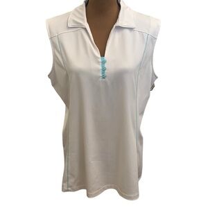 Annika White Blue Sleeveless Golf Pickleball Tennis Shirt Size XL