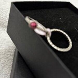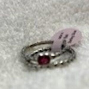 Annika Witt's signature woven sterling silver stackable ring set. One is a band with the brand's woven silver craftsmanship continued all the way around the ring and the second is similar but has the addition of a beautiful heart-shaped, faceted stone in a pale ruby color. Annika Witt is a bohemian-inspired jewelry and accessories brand that offers artfully designed earrings, bracelets, rings, and necklaces. The company was founded in 2015 by designer Annika Witt after she learned traditional jewelry-making techniques from artisans during her travels to Bali. Four main jewelry collections are featured by the brand: sterling silver, gemstones, abalone shell, and Bali-inspired. These rings are from her Bali-inspired line and is sure to be a classic piece that compliments any fashion style. New in Box