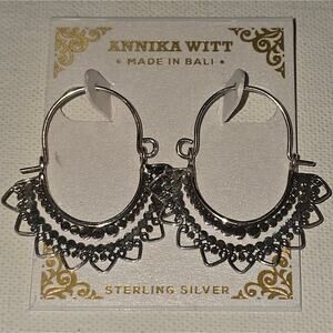 Annika Witt Sterling Silver Filigree Bali Hoop Earrings New!