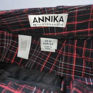Annika by Cutter & Buck Women's Black & Red Plaid Bermuda Golf Shorts Size 4. Excellent condition, like new. See pictures for measurements.