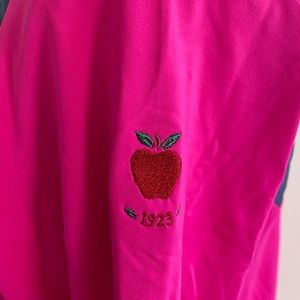This zip front jacket is brand new. The tags were removed in the Pro Shop when I purchased it. It has never been worn. Brand is Annika by Cutter&Buck. The body is a lightweight quilted material and the sleeves are a thin material with Sun Protection UPF 50+. It is part of Cutter&Buck DryTec line. Great Jacket.