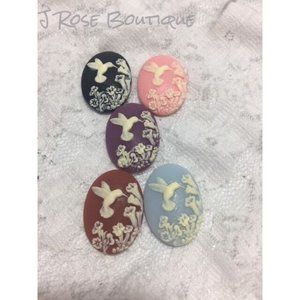 Vintage style Blue Hummingbird Silver antique setting cameo Necklace- THIS CLASSIC LOOKING CAMEO NECKLACE COMES IN 5 DIFFERENT COLORS -