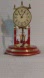 HERE IS A NICE LOOKING KUNDO ANNIVERSARY CLOCK. EVERYTHING LOOKS GOOD. Colonial red base with red pillars. Base in excellent shape! Very rare !Works great! Keeps time! IT IS 12 INCH TALL. THE DOME IS MADE OF GLASS. THANKS FOR LOOKING.key included.This Kundo clock has a ceramic 4 in. diameter dial with golden dots and brass base. •Made In Germany 1954 year. All Parts Are Original, with Glass Dome . Measures 12 in. •This is a restored 61 years old exceptionally clean and beautiful Kundo \400 day anniversary clock with glass dome, key and instruction manual. •This is a Beautiful and Functional Piece of Art! It will make a great Gift for that special someone1.This Kundo 400 DAY GERMAN ANNIVERSARY CLOCK VINTAGE was professionally restored by a clockmaker The clock has a new mainspring! !!!!!2.Has a new suspension spring!!!3.Keeps good timing!!!4.No smoking ,no pets house A new mainspring for a clock is like a new heart for a man! Even if the clock has been CLEANED AND OILED . (the going rate to have this service performed is $230) if the mainspring is not replaced, the clock will work a month or two and will stop! YOU CAN EXPECT THIS clock to work a long time!