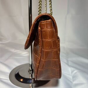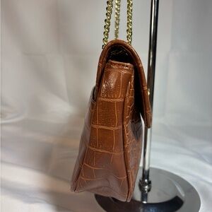 Elegant brown shoulder bag with a crocodile embossed design. Features a stylish chain strap for a chic look.