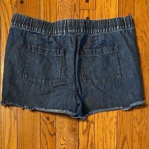 Like new Ann Taylor Loft denim drawstring waist Shorty shorts. EUC, great shape, size 6, cotton blend, raw hem, approximately 3” inseam, see pictures for details. Come shop my closet for more great deals. Get 15% or more off for bundles of 3+ items. Open to offers. Smoke/ pet free home.