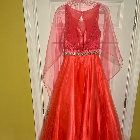 Sweet 16 dress w/ Rhinestones, Sheer Shawl. Worn once good condition.