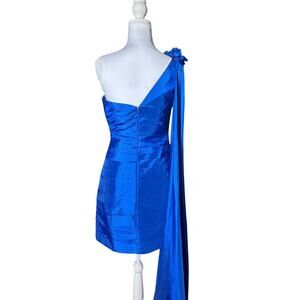 Anny Lee Royal Blue One Shoulder Scarf Fitted Ruched Small Homecoming Mini Dress