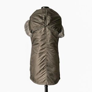 Anoarak Long Line Hooded Vest Removable Fur Trim Olive Green Large