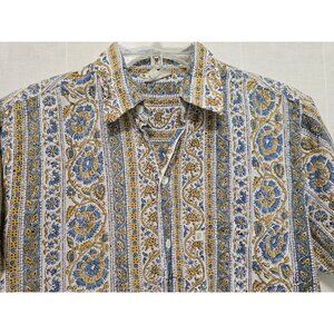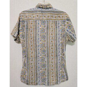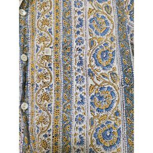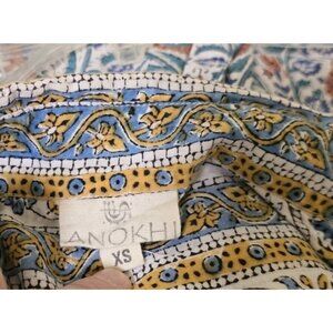 Anokhi Shirt Mens XS Blue Yellow Block Print Short Sleeve Button Up India Cotton