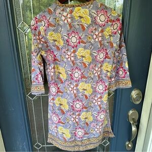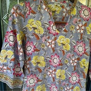 Anokhi size small 100% cotton Indian floral 3/4 sleeve long tunic boho