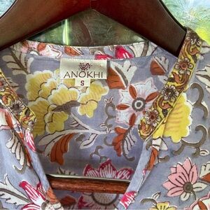 Anokhi size small 100% cotton Indian floral 3/4 sleeve long tunic boho. Excellent used condition. No holes stains or flaws.