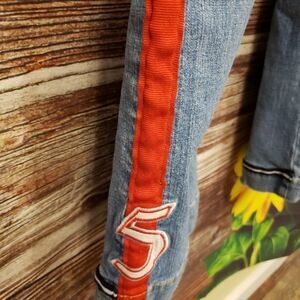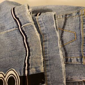 Jeans are in good condition with wear on hems. Shown in pictures.