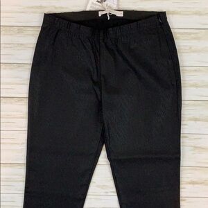 Anonyme Aurora Trouser. Elastic waist with side zipper. Two tiny back pockets. Black rayon/polyamide/spandex blend. Semi shiny chevron pattern in fabric but it is subtle. New with tags, never worn. Women’s size 10/42EU.