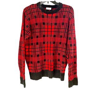 Another Influence Men’s Red Plaid Crew Neck Knit Sweater Size Medium Casual
