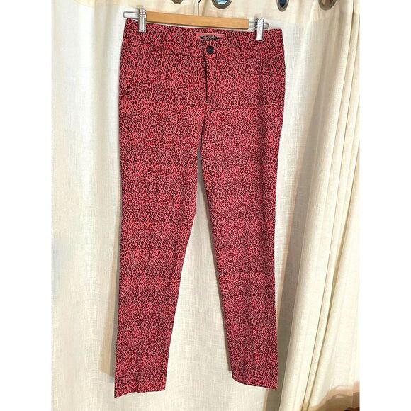Another Label Italian Pink Leopard Skinny Jeans, size small. Pin-up Chic. Very cool skinny cotton pants, not a heavy as denim. Has some stretch. Euro size 40. Measured flat waits 14.5", rise 8", inseam 29". EUC. Non-smoking home