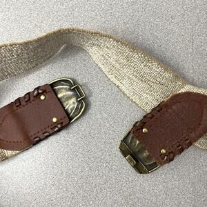 Another Line Elastic Belt S/M Brass Buckle Leaves Boho Bohemian Waist Stretch