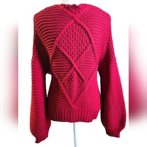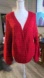 Chic and warm cable knit cardigan. Vibrant red hue. Perfect for layering.
