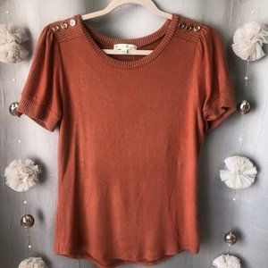 Another Reason Rust Short Sleeve Lightweight Sweater. Button detail on shoulders. Super soft.