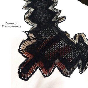 This sample may not have gone into final production (unless someone can find an example online, I haven't been able). Instead, you can find the Lace Inset Crepe shirt & skirt included here in a stock pic. This is included to demonstrate the transparency of the lace insert sections.